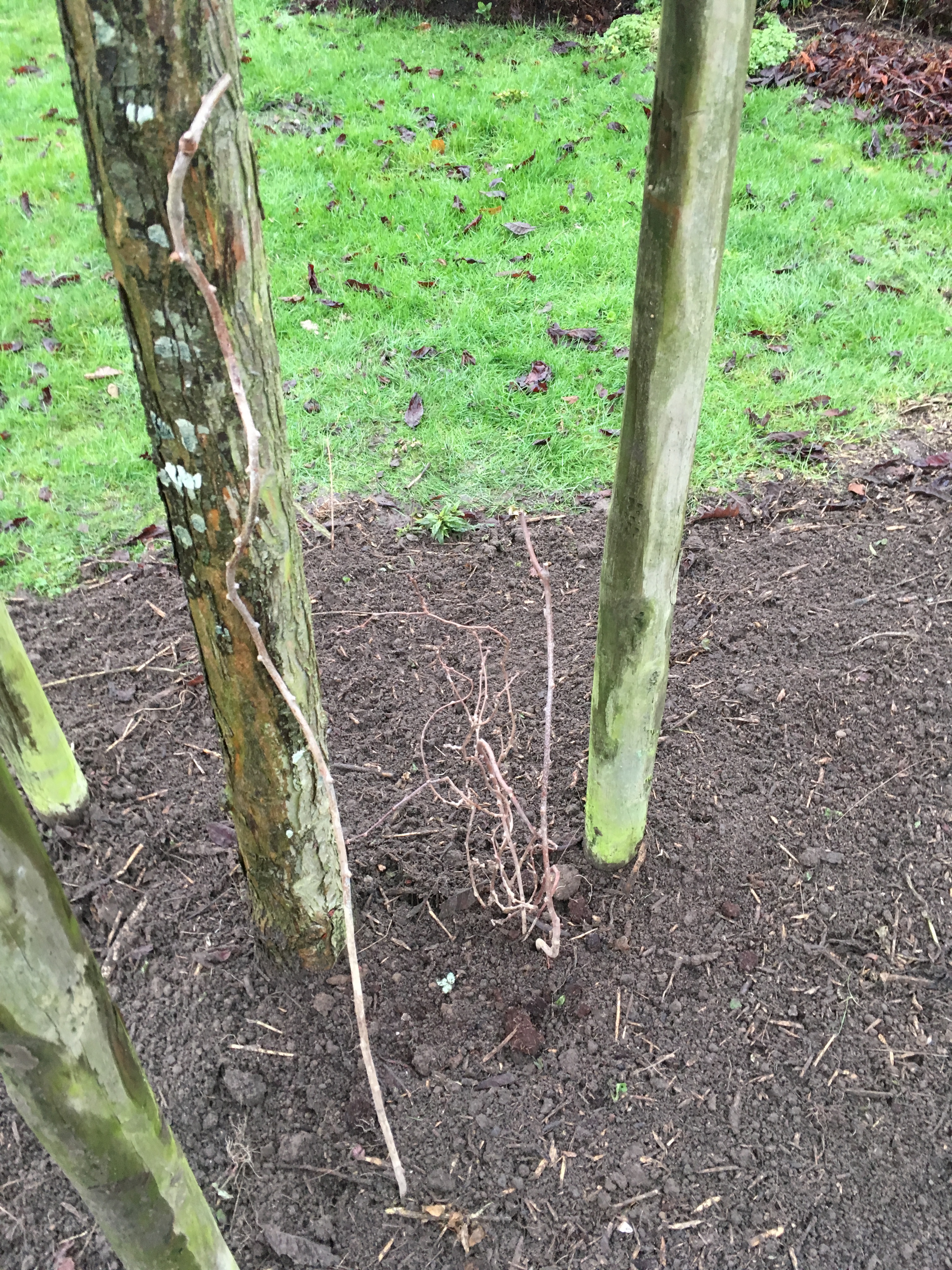 In het najaar vielen ze niet af en er kwamen barsten in zijn stam. Ik vrees dat mijn boom morsdood is. Ik kon het echter niet over mijn hart krijgen hem om te zagen omdat ik zijn takken zo prachtig vind. Eerst dacht ik het toch te doen en de takken te hergebruiken in de border. Gewoon om daar te liggen mooi zijn en te vergaan en huisvesting te bieden voor allerlei kriebelbeestjes.