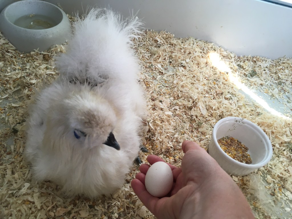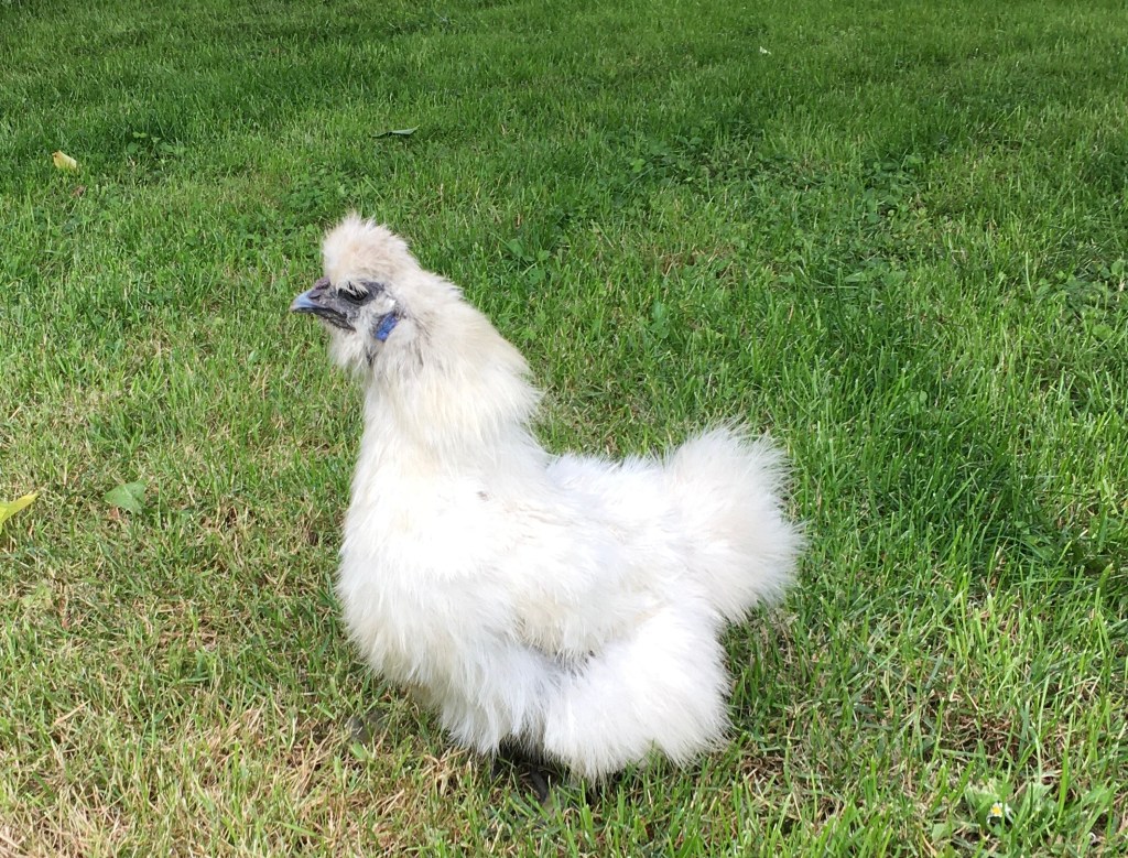 Sinds vorig jaar heb ik terug ‘een Katleen’. Deze keer is het een wit zijdehoentje. De kuikens die ik zelf kweek, zijn nogal handtam. Samen met moeder kip slapen ze in het tuinhuis in een hokje. Elke dag neem ik ze uit dat hokje en zet ze in een rennetje op het gazon. Daardoor zijn ze het gewoon om opgepakt te worden.