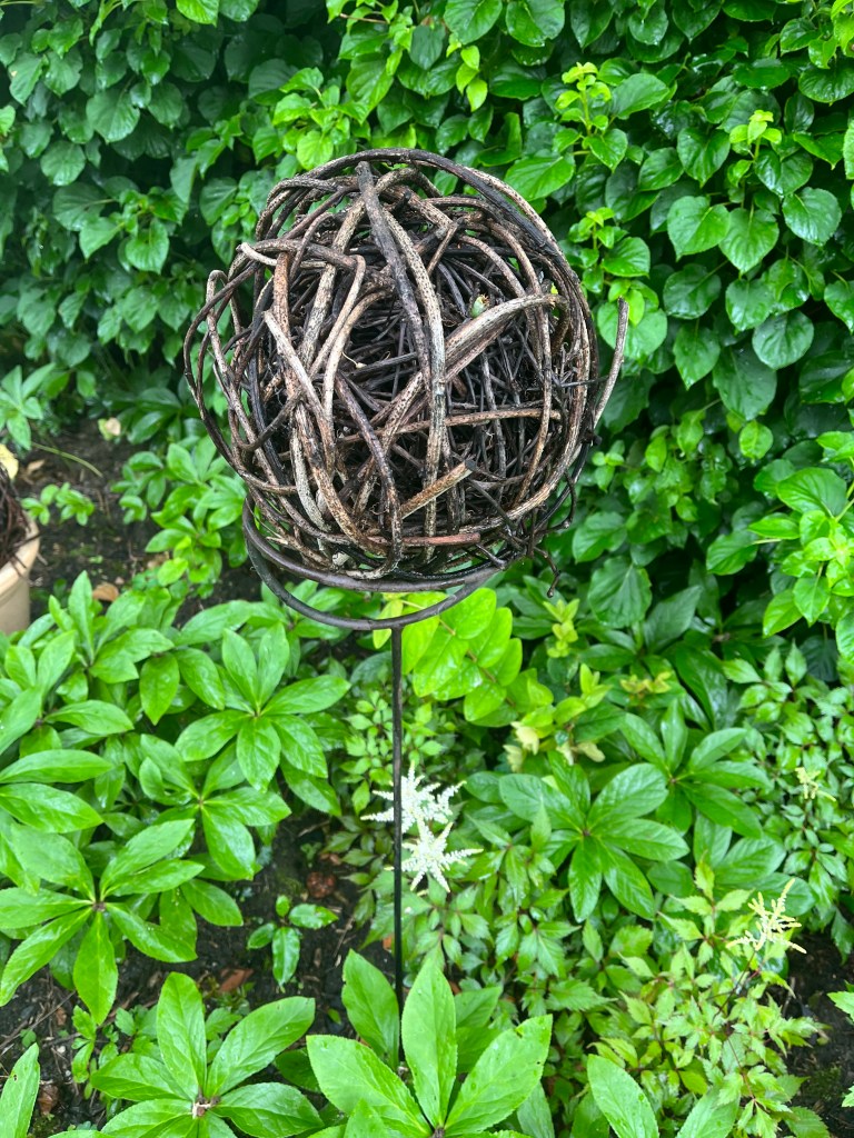 Ik vond het zo tof om Lieve eindelijk eens in ’t echt te zien. Hoe ze kan praten over haar planten, ze is zo’n gepassioneerde dame. Ook jongste dochter was in de tuin aanwezig met een tentoonstelling van haar abstracte schilderijen. Her en der vonden we een mooi tuinornament of een bloemschikkunstwerkje.