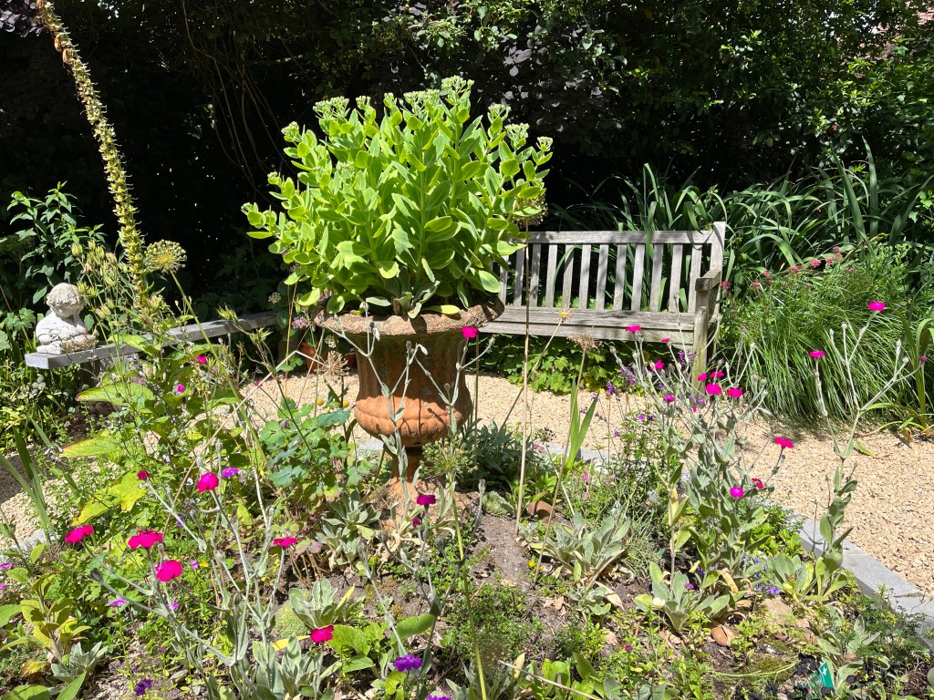 We hebben al wel wat uurtjes gewerkt in de tuin. Volgende maand is Johan drie jaren overleden en zijn borders waren helemaal verwilderd. Lies en ik hebben er al veel zweet maar geen tranen gelaten. Het is zo plezant om samen onkruiden te lijf te gaan en stilaan te zien wat het gaat worden. De meeste rozenplanten hebben de verwaarlozing overleefd. We hebben de drie perken verlost van onkruid en graszoden, de grond afgedekt met karton en kruiwagens compost toegevoegd. De cursus rozen snoeien die we ooit van Frans De Smedt kregen, kwam van pas. Ondertussen staan de planten gezond te ‘shinen’ getooid met vele bloemen die zalig geuren als je er passeert.