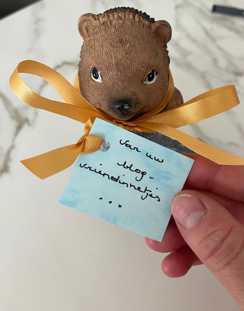 Ik had nochtans beloofd dat ik ging laten weten hoe de wedstrijd van Ecostyle afgelopen was. Wel, wij zijn gewonnen! Er hebben meer dan 3000 mensen gestemd en wij kregen 84% van de stemmen. De tweede kandidaat 10% en de derde 6%. Vorige week kwamen Josiane, Liesbeth en Isabelle van Ecostyle ons de cheque heel plechtig overhandigen. Ze hadden zelfs taart bij en ze hebben een podcast opgenomen in onze living. Ze waren super enthousiast over onze plannen en vonden de plek waar de pluktuin gaat komen, nu al magisch.