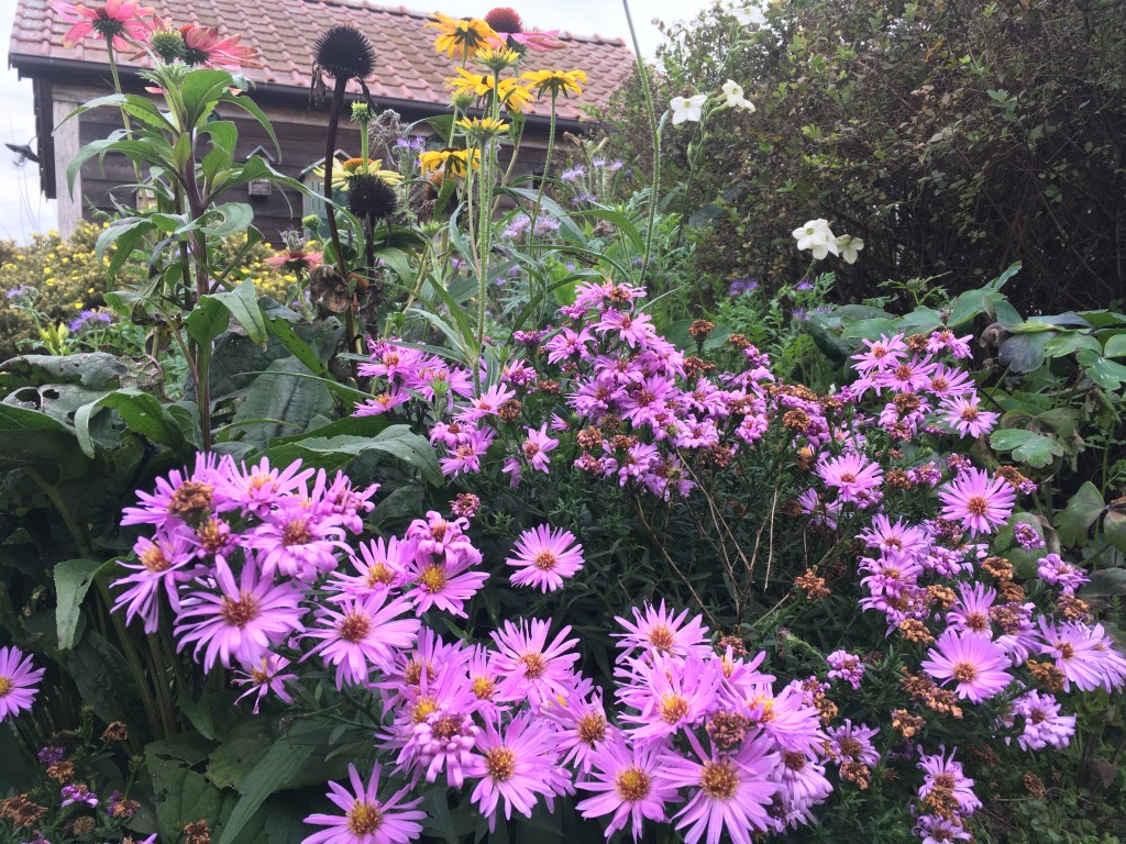In de tuin geven de Asters een laatste kleurenspektakel.