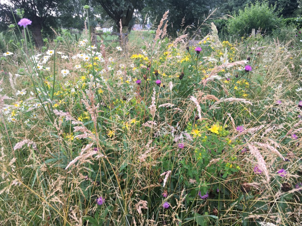 Toen we hier in 2009 kwamen wonen, lieten we met hulp van Natuurpunt een poelgracht graven achteraan onze tuin. Al snel zat daar heel veel leven in: verschillende soorten libellen, kikkers, salamanders, padden, krinkelende winkelende waterdiertjes. Echt tof! In de weide achter onze tuin groeiden vooral boterbloemen en pinksterbloemen. Het was hier heel romantisch en biodivers.